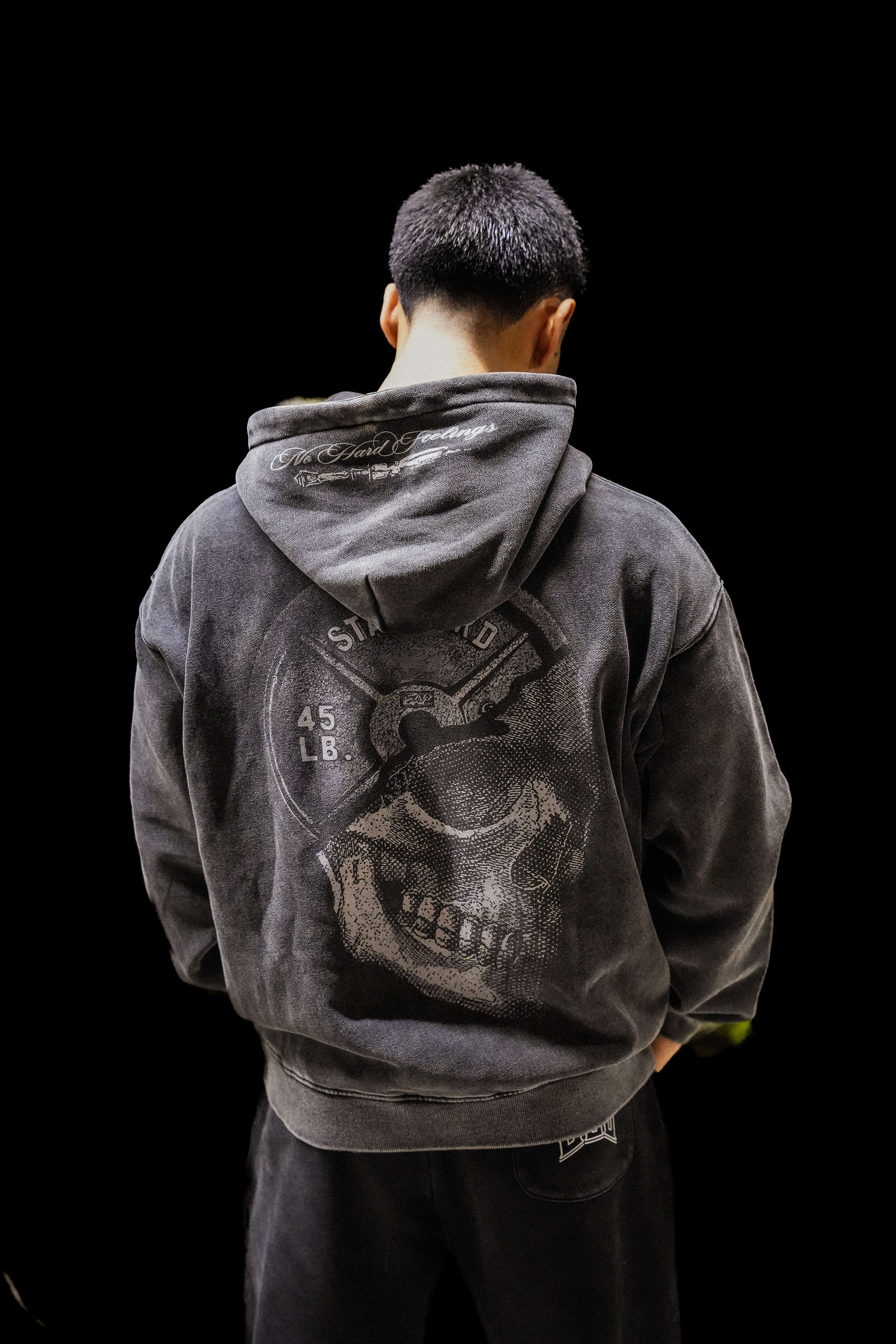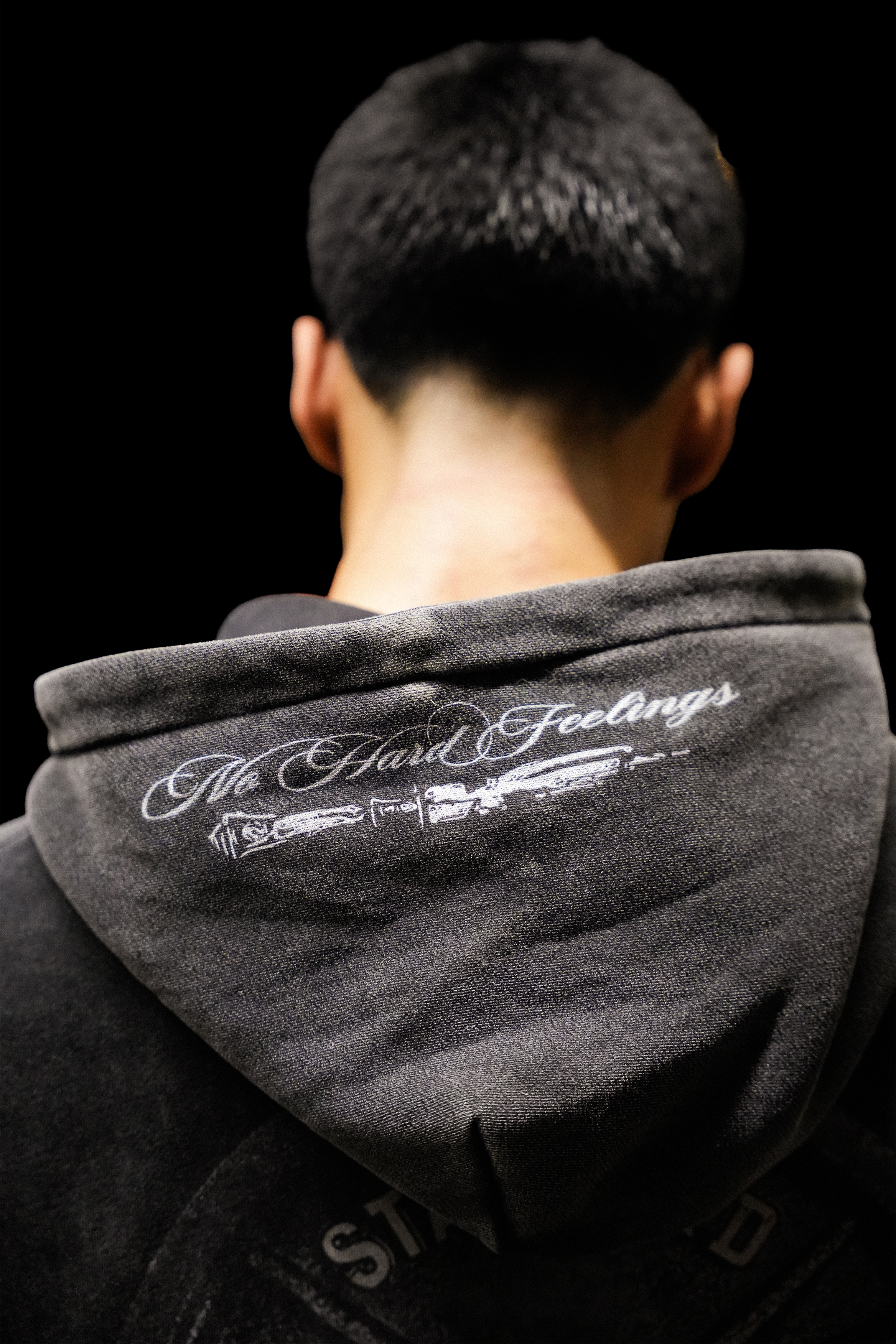 • Hood embroidery: “No Hard Feelings”