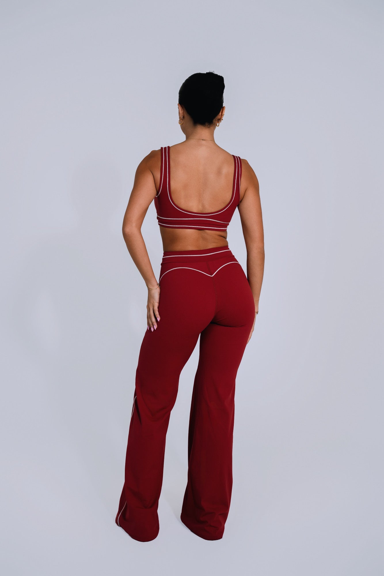 The Signature Top delivers secure support with a clean, minimal design, while the Flare Leggings contour the waist and hips before flowing into a flattering flare silhouette that elongates the legs and enhances your natural shape.