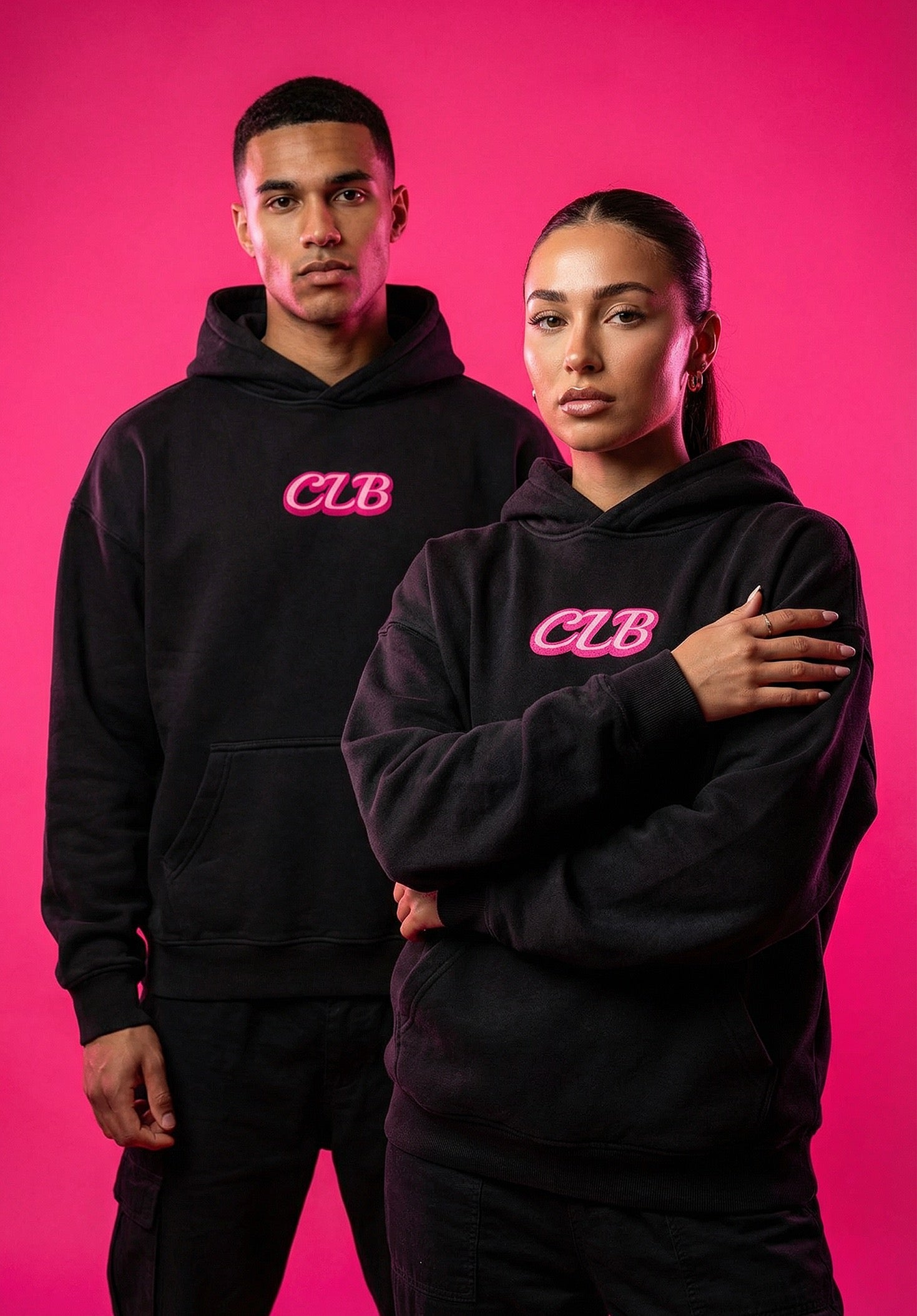 Designed in classic black with bold pink detailing, this hoodie balances softness with edge. Heavyweight and cozy without feeling bulky, it’s the kind of piece you reach for every day and still feel put together. The front keeps it clean and understated, while the back makes the statement.